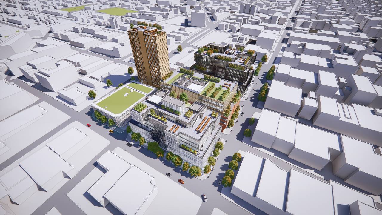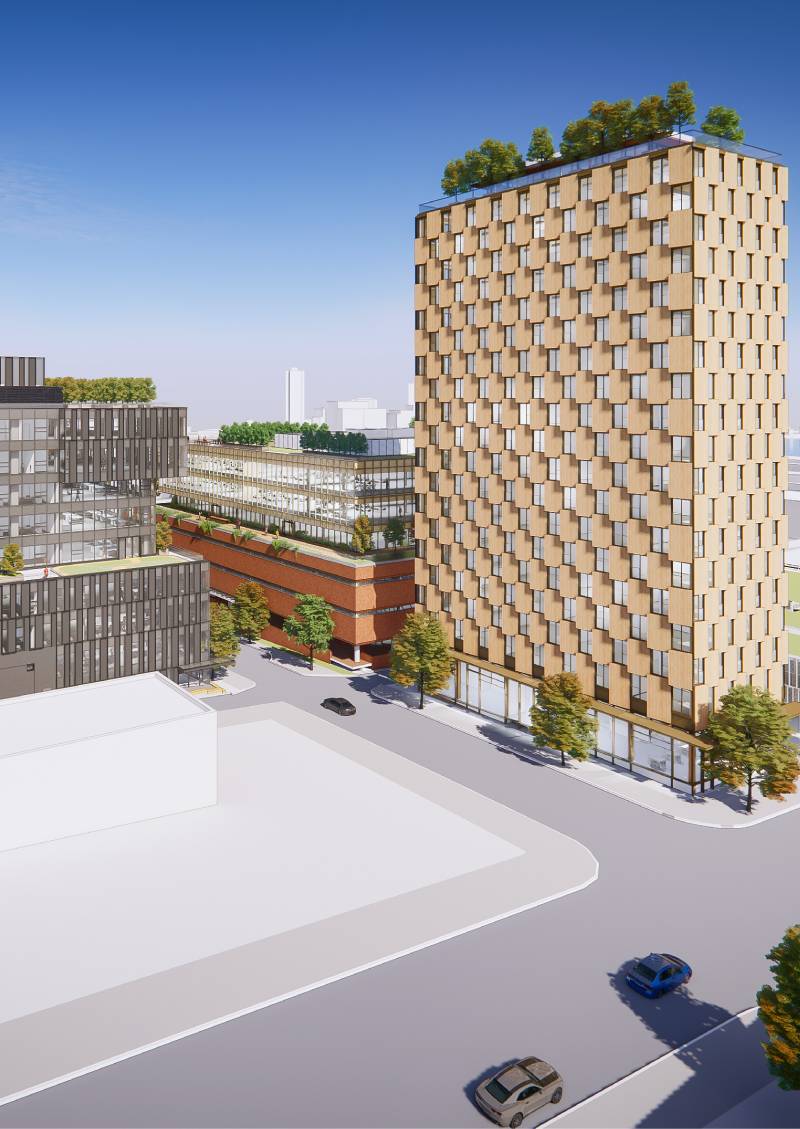 The proposed development will connect to the City of Vancouver’s Southeast False Creek (SEFC) Neighbourhood Energy Utility, which will provide low carbon heat for space heating and domestic hot water. The NEU utilizes high system efficiencies and sewage heat recovery to supply approximately 70% of its annual energy demand resulting in an over 50% GHG reduction in heating compared to conventional building systems. The heat energy will be delivered via a network of below-grade hot water distribution pipes to an energy transfer station located in each building at Main Alley.